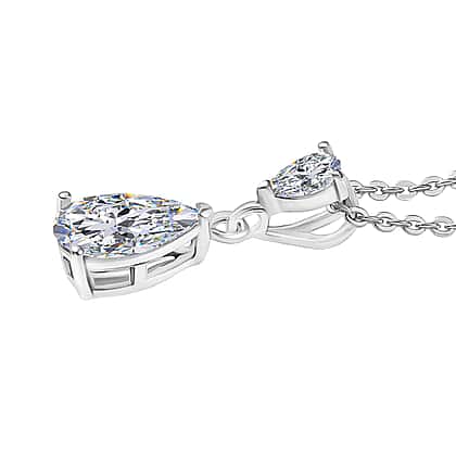 Swarovski Zirconia Pendant with Chain (Size 20) in Rhodium Overlay Sterling Silver 1.51 Ct.