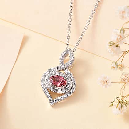 Tanzanian Blush Garnet & Natural Zircon Pendant with Chain (Size 20) in Rhodium Overlay Sterling Silver 1.68 Ct