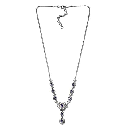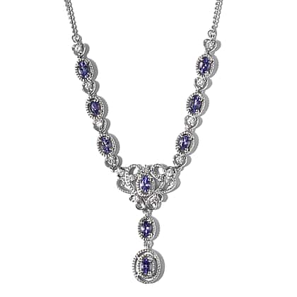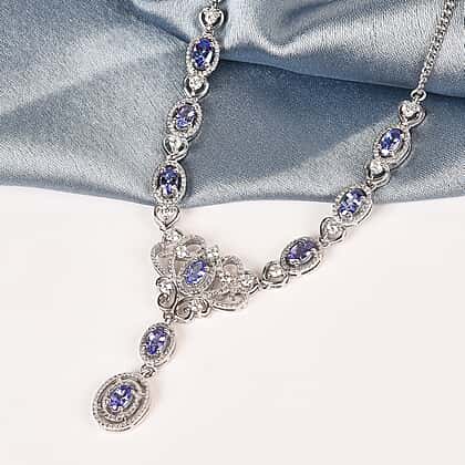 2.06 Ct. Tanzanite and Natural Cambodian Zircon Necklace in Platinum Plated Sterling Silver 18 Inches