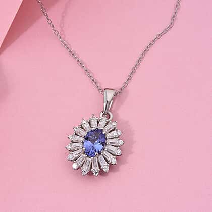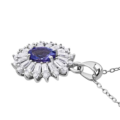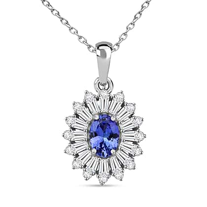 Tanzanite & Moissanite Pendant with Chain (Size - 20) in Rhodium Overlay Sterling Silver 1.23 Ct.
