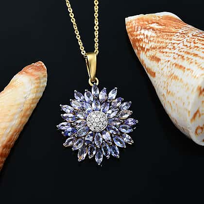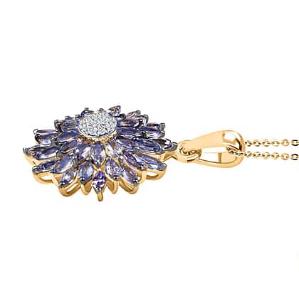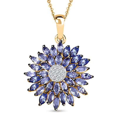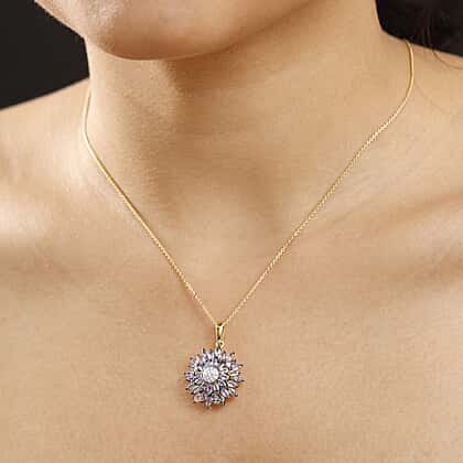 Tanzanite and Moissanite Floral Pendant with Chain (Size 20) in 18K Vermeil Yellow Gold Plated Sterling Silver 3.41 Ct.