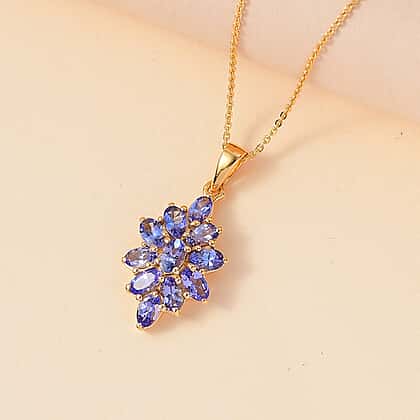 Tanzanite Cluster Pendant with Chain (Size 20) in 18K Yellow Gold Vermeil Plated Sterling Silver