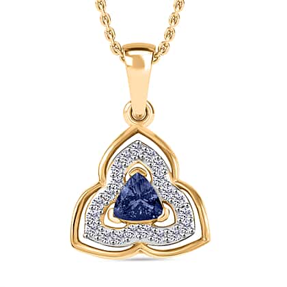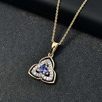 Tanzanite & White Zircon Pendant with Chain (Size 20) in 18K Vermeil Yellow Gold Plated Sterling Silver 0.56 Ct.