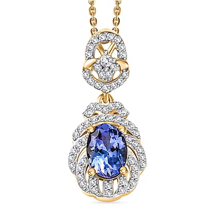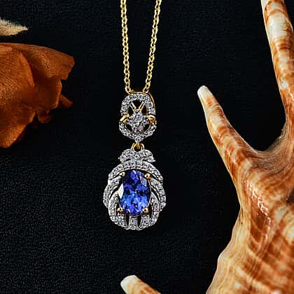 Tanzanite & White Zircon Pendant with Chain (Size 20) in 18K Vermeil Yellow Gold Plated Sterling Silver 1.28 Ct.