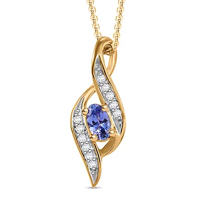 Tanzanite, White Zircon Pendant with Chain (Size 20) in 18K Yellow Gold Vermeil Plated Sterling Silver