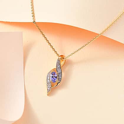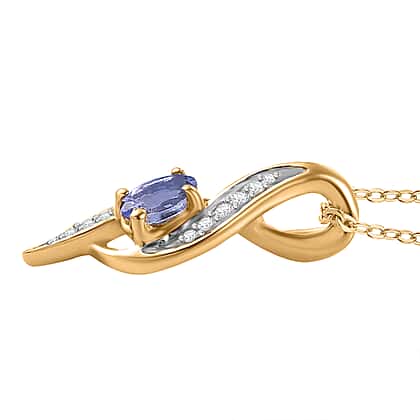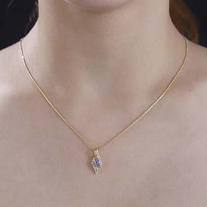 Tanzanite & White Zircon Pendant with Chain (Size 20) in 18K Vermeil Yellow Gold Plated Sterling Silver