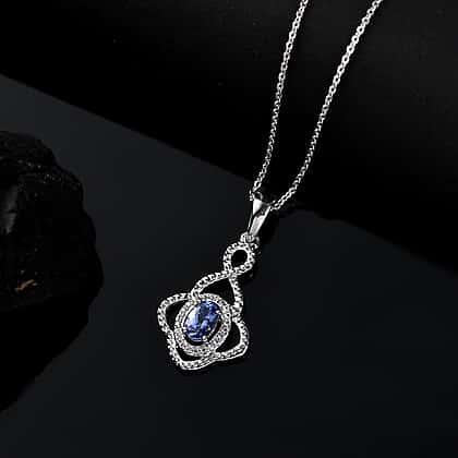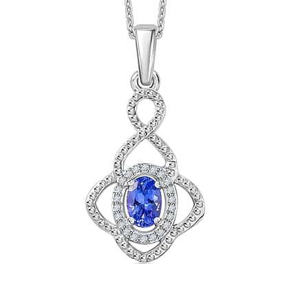 Tanzanite & White Zircon Pendant with Chain (Size 20) in Rhodium Overlay Sterling Silver 0.64 Ct.