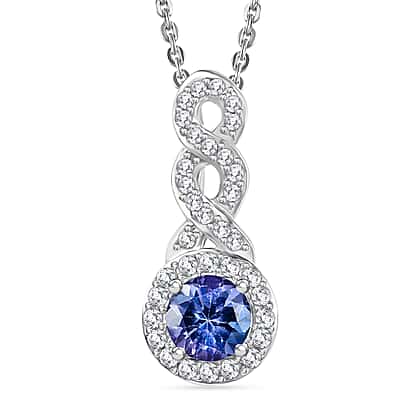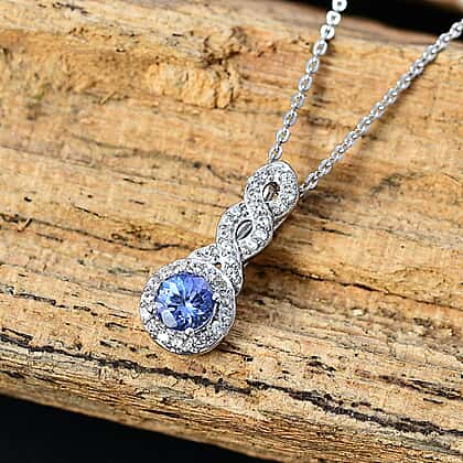 Tanzanite & White Zircon Pendant with Chain (Size 20) in Rhodium Overlay Sterling Silver 0.72 Ct.