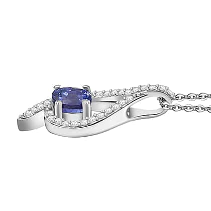Tanzanite & White Zircon Pendant with Chain (Size 20) in Rhodium Overlay Sterling Silver 1.00 Ct.