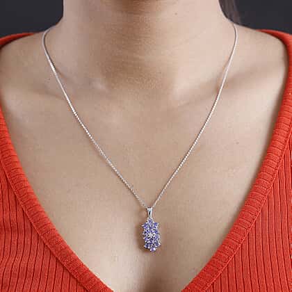 Radiate elegance with this tanzanite cluster pendant, a timeless piece that adds sophistication to any outfit. The pendant showcases a stunning cluster of pear-shaped tanzanites arranged in a floral motif, symbolising beauty and growth. A single white zircon sits at the centre, enhancing the pendant's brilliance. Perfect for formal occasions or adding a pop of colour to your everyday look, this pendant is crafted in rhodium overlay sterling silver, offering durability and long-lasting shine. This piece is an exquisite balance of contemporary design and classic appeal.