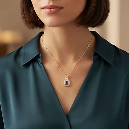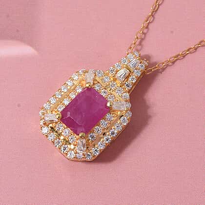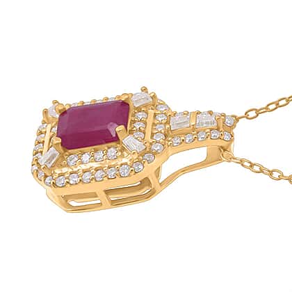 Taveta Ruby, Moissanite Pendant with Chain (Size 20) in 18K YG Vermeil Sterling Silver 0.59 ct 1.890 Ct.
