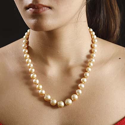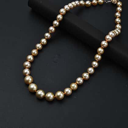 THE GRAND PEARL FIND - ILIANA 18K Yellow Gold AAAA Golden South Sea Round Pearl (8-12MM) Necklace (Size - 20) 324.0 Ct