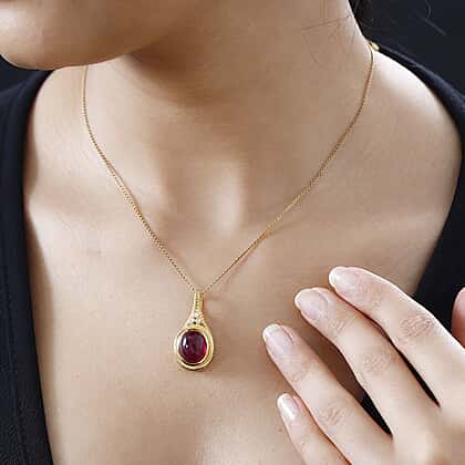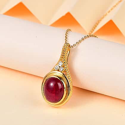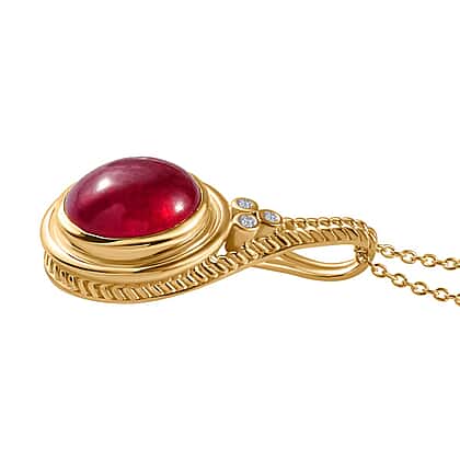The Majestic Cabochon African Ruby, Moissanite Pendant with Chain (Size 20) in 18K Vermeil YG Plated Sterling Silver 8.05 Ct, Silver Wt. 5.6 Gms
