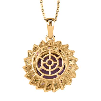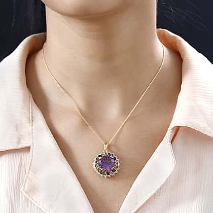 TJC EXCLUSIVE HANABI CUT - Amethyst & Multi Tourmaline Pendant with Chain (Size 20) in 18K Gold Vermeil Sterling Silver 11.20 Ct.