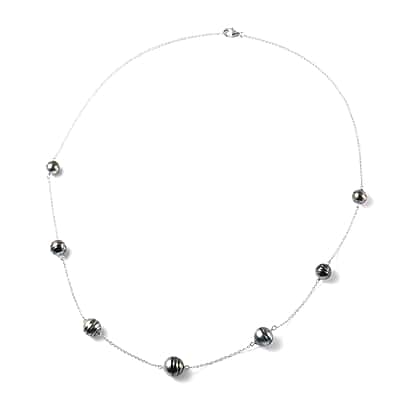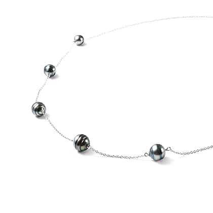 TJC Launch - Tahitian Pearl Station Necklace (Size - 24) in Rhodium Overlay Sterling Silver
