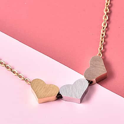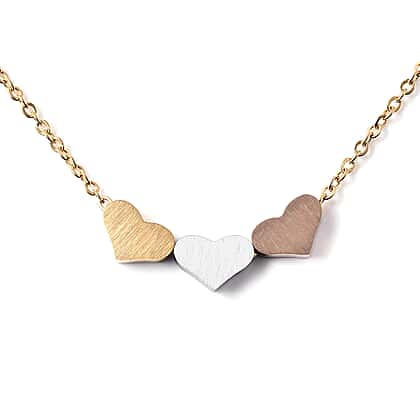 Triple Heart Necklace (Size 18 with 2 inch Extender ) in Tri-Tone Stainless Steel