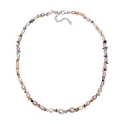 Tucson Closeout Deal - Multi Color Fresh Water Pearl Necklace (Size 18 - 2 Ext) with Lobster Clasp in Rhodium Overlay Sterling Silver 95.00 Ct.