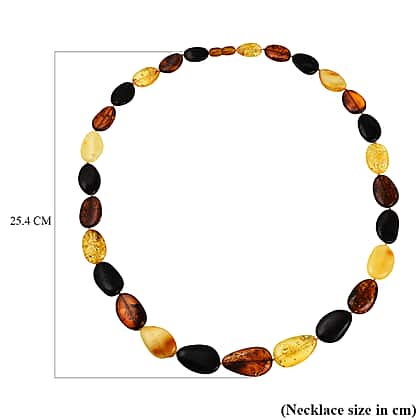 This gorgeous Natural Multi Colour Baltic Amber Coin Link Necklace is a stunning accessory that also carries a healing aura. It features 25 assorted baltic amber beads, each unique in appearance as the amber is derived from nature. While Baltic amber is supposed to be a healing and cleansing stone, the warm glow of the beads in this necklace itself offers a calming effect on the mind of the wearer.