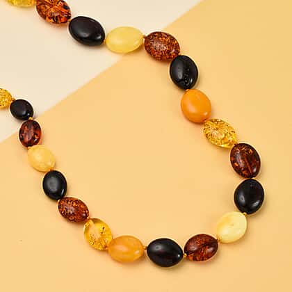 Tucson Special - Natural Multi Colour Baltic Amber Oval Link Necklace (Size 30) in Sterling Silver