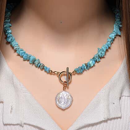Turquoise White Shell Pearl T-Bar Clasp Necklace (Size - 20) 125.01 Ct.