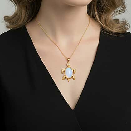 Turtle Spirit Opalite Pendant with Chain (Size 20-2 Ext) in Yellow Gold Tone 10.00 Ct.