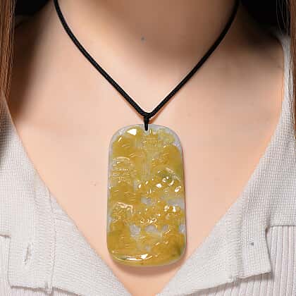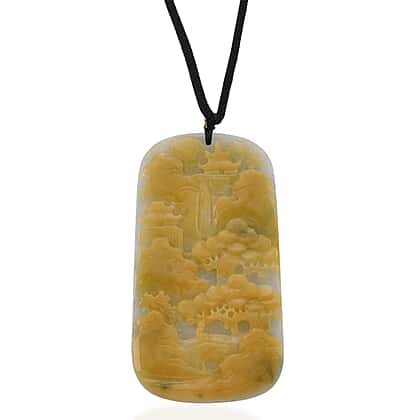 Few necklaces can make their presence felt, this jade stone necklace with artistic, landscape details makes for one such piece. It features a rectangular pendant with smooth, curved corners. The centre stone glows in soft yellow hues and features dreamy, hand-carved landscape details. The stone's gently rounded corners and polished finish are designed for comfort, while the classic black cord adds a modern, simple vibe. Ideal for dressing up a basic tee or adding interest to a casual look, this necklace can make for your new go-to and exudes effortless charm.