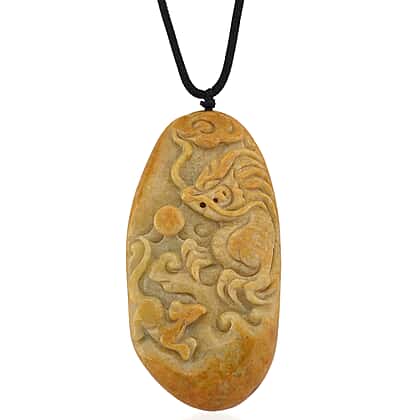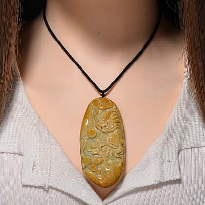 When it comes to accessorising,if you are someone who appreciates a more artful aesthetic then this jade necklace will certainly appeal to you. It features an exquisitely hand-carved dragon whose majesty seems to come alive in yellow-white tones. This dragon motif is etched on an irregular shaped jade which lends an organic, earthy feel to the design. Inspired by eastern artistry, this necklace features a swirling dragon body which seems to be rising from the mist. It can symbolise overcoming obstacles, thus can also inspire wearers to overcome obstacles and rise above the troubles.The jade stone in the necklace comes attached to a black cord which further helps to imbue a sense of power and boldness to the design.