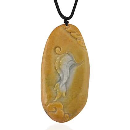 Type A Natural Bi Colour Honey Jade Hand Carved Necklace with Cotton Thread (Size 28 Adjustable) 520.00 Ct.
