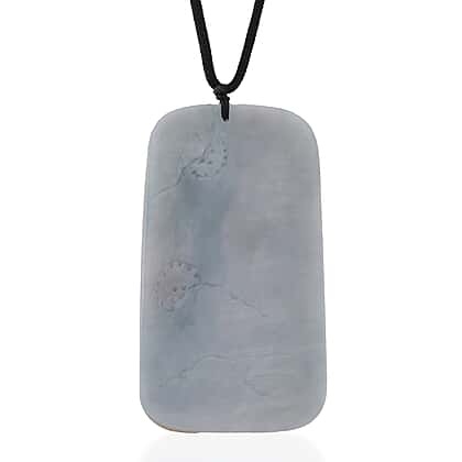 Just a necklace that begs you to run your fingers over its smooth curve! We are talking about this jade stone necklace that features a rectangular shape, blending muted yellows and gentle greys. It is intricately carved with landscape details like lofty hills and classic treetop forms. Its smooth surface rests lightly against the skin and held by a simple black cord that keeps styling easy and modern. Whether worn with a crisp shirt or a relaxed dress, this necklace shines as a subtle, statement piece.