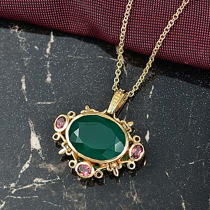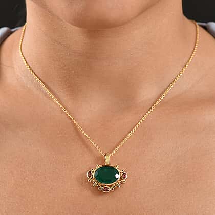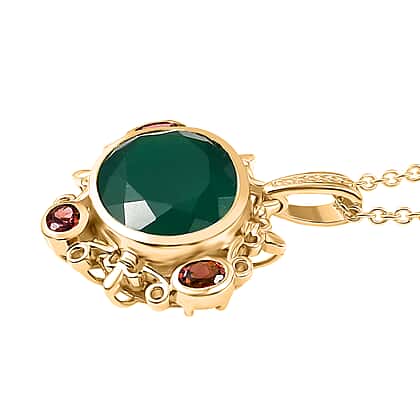 Verde Onyx & Orissa Rose Garnet Pendant with Chain (Size 20) in Yellow Gold Plating 8.40 Ct.