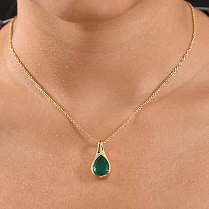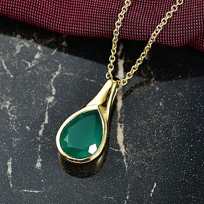 Verde Onyx Pendant with Chain (Size 20) in Yellow Gold Plating 4.41 Ct.