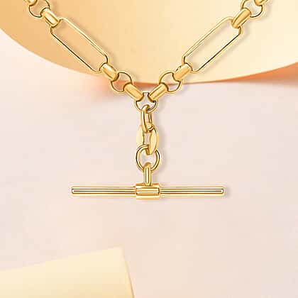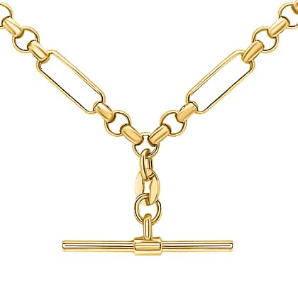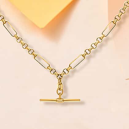 Vicenza Closeout 9K Yellow Gold T-Bar Figaro Belcher Necklace (Size - 18) with Albert Clasp, Gold Wt. 6.10 Gms