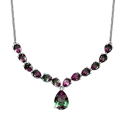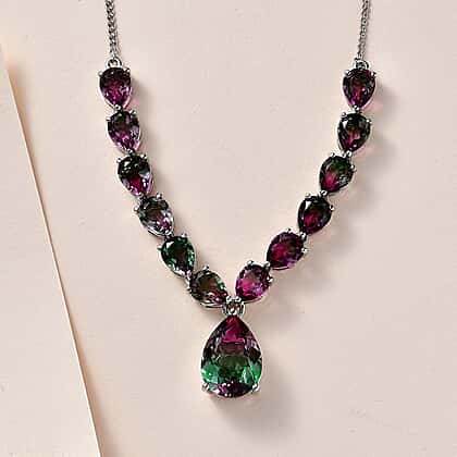 Discover the mesmerising charm of the Bi-colour tourmaline quartz triplet cluster necklace, gracefully presented in a size 20. Each pear-shaped bi-colour tourmaline quartz triplet is meticulously set in platinum overlay sterling silver, radiating a dance of colours reminiscent of sunlit summer days. The intricate cluster design brings out the depth and brilliance of the quartz, making it a perfect centrepiece for any ensemble. Securely fastened with a lobster claw clasp, this necklace ensures style and reliability in one beautiful piece.