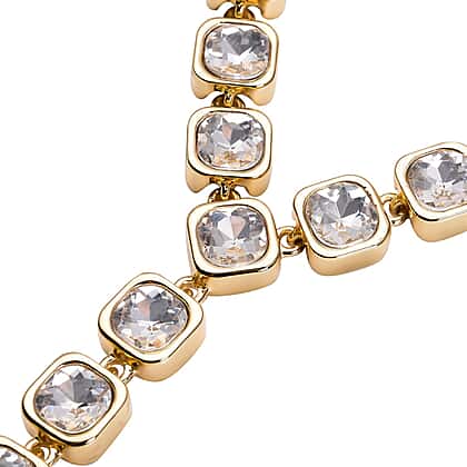 White Austrian Crystal Necklace (Size - 28) in Yellow Gold Tone