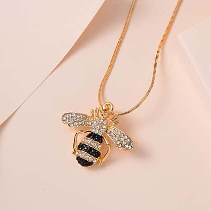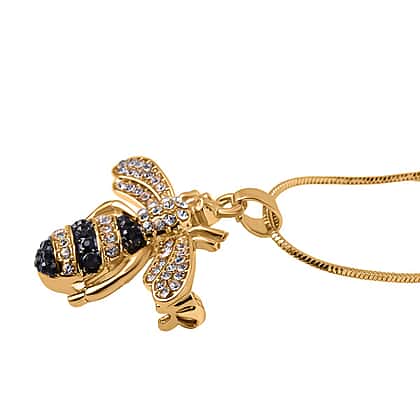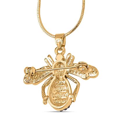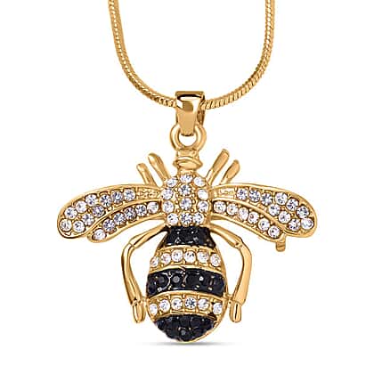 White Austrian Crystal With Black Enamelled Bee Brooch Come Pendant (Size - 24-2 Ext) in Yellow Gold Tone