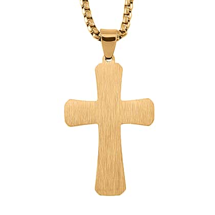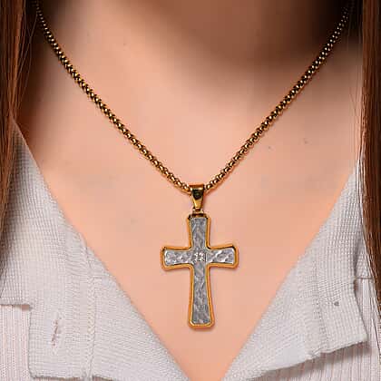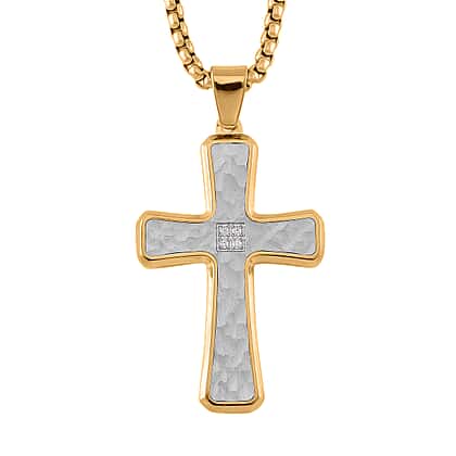 White Crystal Cross Pendant With Chain (Size - 22) in Two Tone