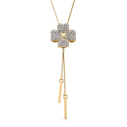 White Crystal Floral Necklace (Size - 32, Adjustable)