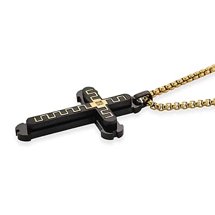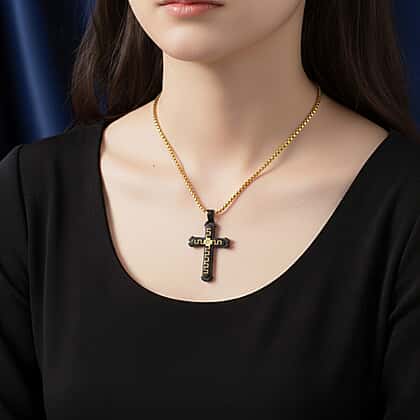 White Cubic Zirconia Cross Necklace (Size - 24 - 2 Ext) in Dual Colour Tone