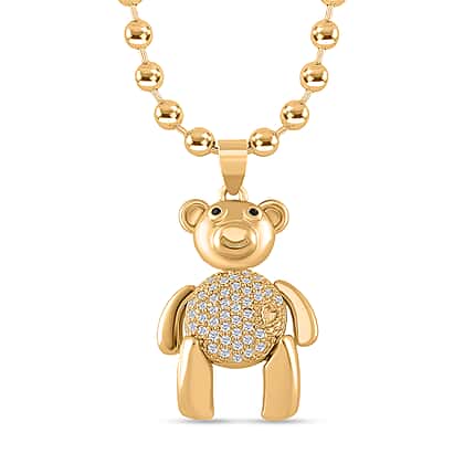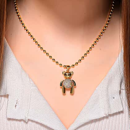 White Cubic Zirconia Necklace with Pendant (Size - 18-2) in Yellow Gold Tone