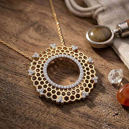 White Diamond Kanchanaburi Blue Sapphire Pendant with Torn Chain 19DC (Size 20) in 18K YG Vermeil Sterling Silver 0.01 ct Silver Wt. 5.55 Gms 0.278 Ct.