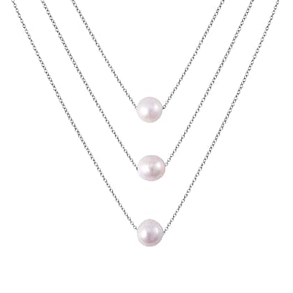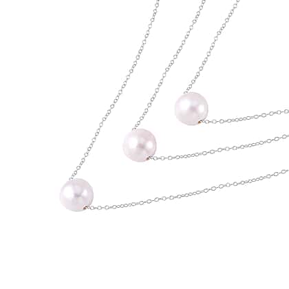 White Edison Pearl Necklace (Size - 20) in Rhodium Overlay Sterling Silver