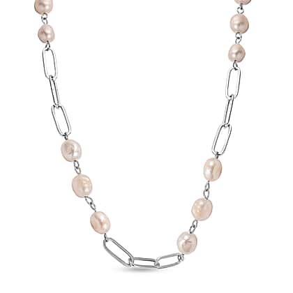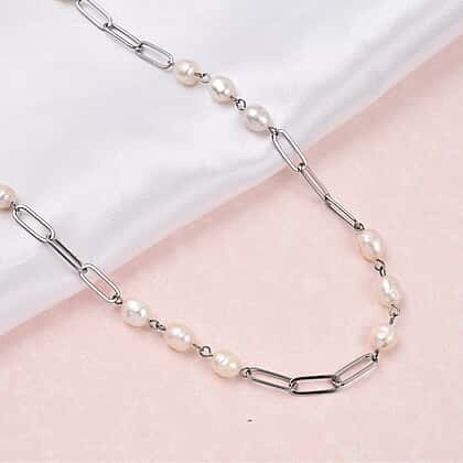 White Fresh Water Pearl Necklace (Size - 18 with 2 Inch Extender) in Silver Tone