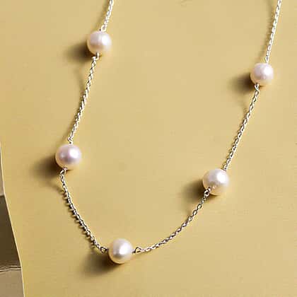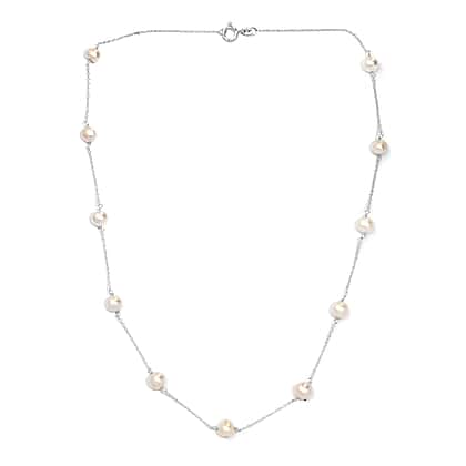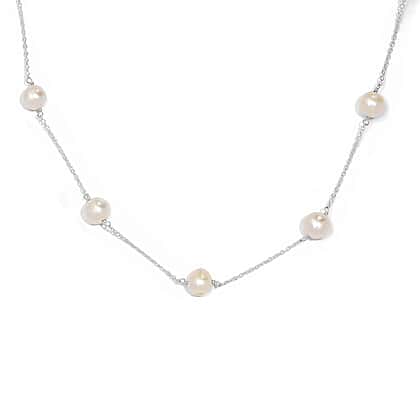 White Fresh Water Pearl Necklace (Size - 20) in Sterling Silver