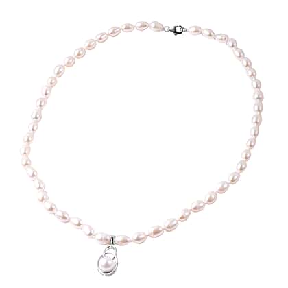 White Freshwater Pearl Single Strand Necklace in Sterling Silver 20 Inches