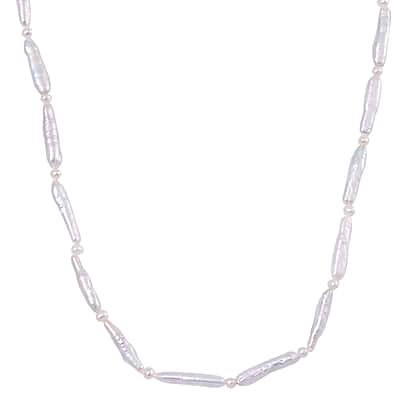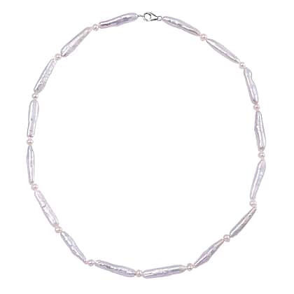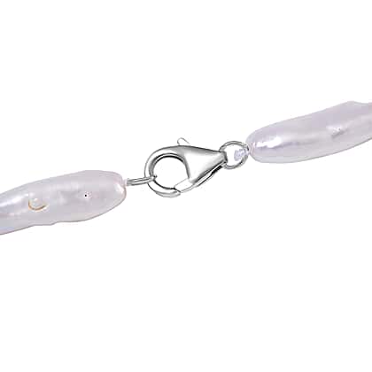 White Keshi Pearl,White Fresh Water Pearl Necklace (Size - 20) in Rhodium Sterling Silver 95.00 Ct
