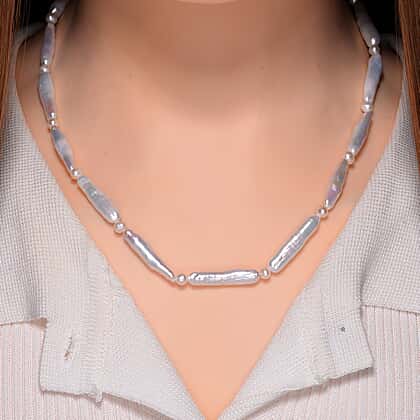 White Keshi Pearl,White Fresh Water Pearl Necklace (Size - 20) in Rhodium Overlay Sterling Silver 95.00 Ct