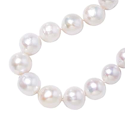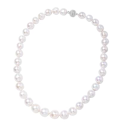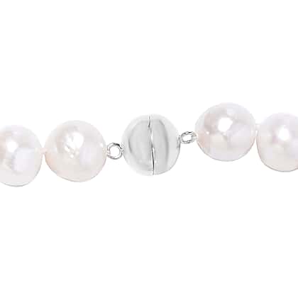 White Organic Edison Pearl Necklace (Size 20) with Magnetic Clasp in Rhodium Overlay Sterling Silver