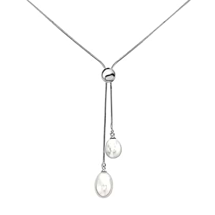 Freshwater White Pearl Drop Bolo Necklace in Sterling Silver 16 Inches