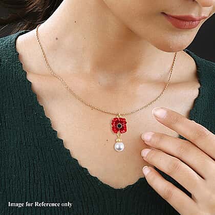 Experience refined beauty and exceptional craftsmanship with this floral-inspired pendant in rich red. The piece features Austrian black crystal at the centre of the red flower, complemented by the smooth finish of white shell pearl in a drop design. Crafted in pure alloy, this piece offers durability and enduring shine, making it perfect for everyday wear. The captivating flower design in rich red adds a touch of nature’s beauty to your outfit, making it ideal for gifting and personal styling on special occasions.