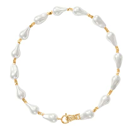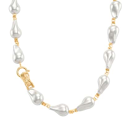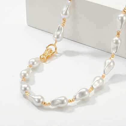 White Shell Pearl Beads Necklace (Size - 20) in Yellow Gold Tone